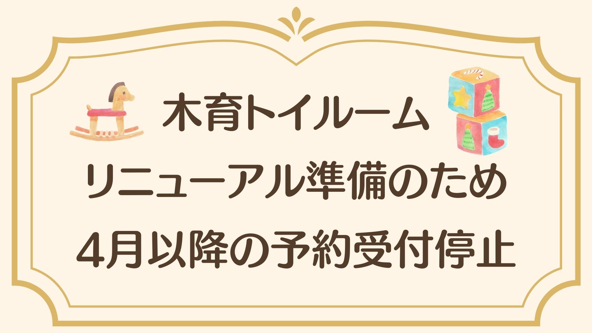 木育トイルームは4月より営業時間等の変更を予定しており、リニューアルオープンのための準備期間を設ける運びとなりました。